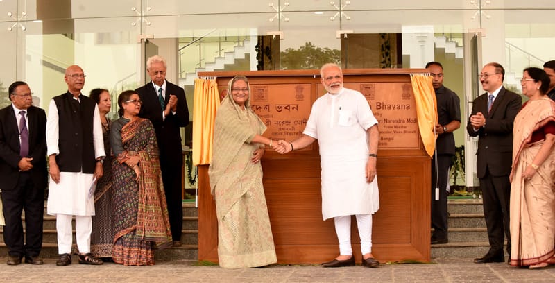 Hasina and her Indian counterpart Narendra Modi jointly unveiled the plaque of Bangladesh Bhaban at Vivsa-Bharati University in Santiniketan. The two-storeyed building was constructed at a cost of Rs 25 crore.