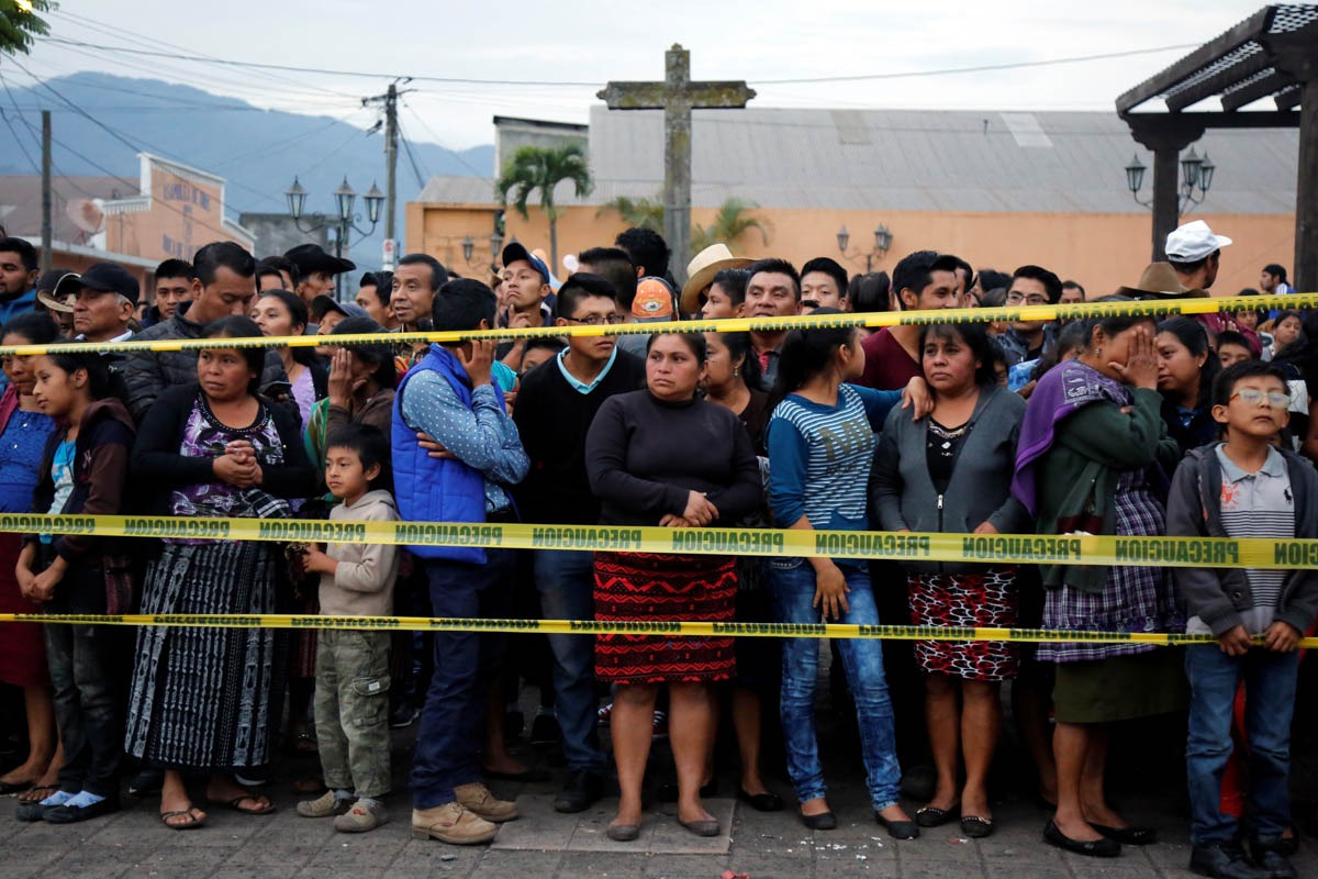 Residents stand behind the cordon line for safety after Fuego volcano erupted violently in San Juan Alotenango, Guatemala June 3, 2018. REUTERS/Luis Echeverria – RC12BAFF4EB0