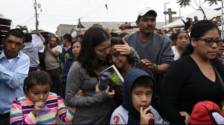 Those who managed to escape have sought refuge in makeshift shelters set-up in churches and schools in the nearby town of Escuintla.